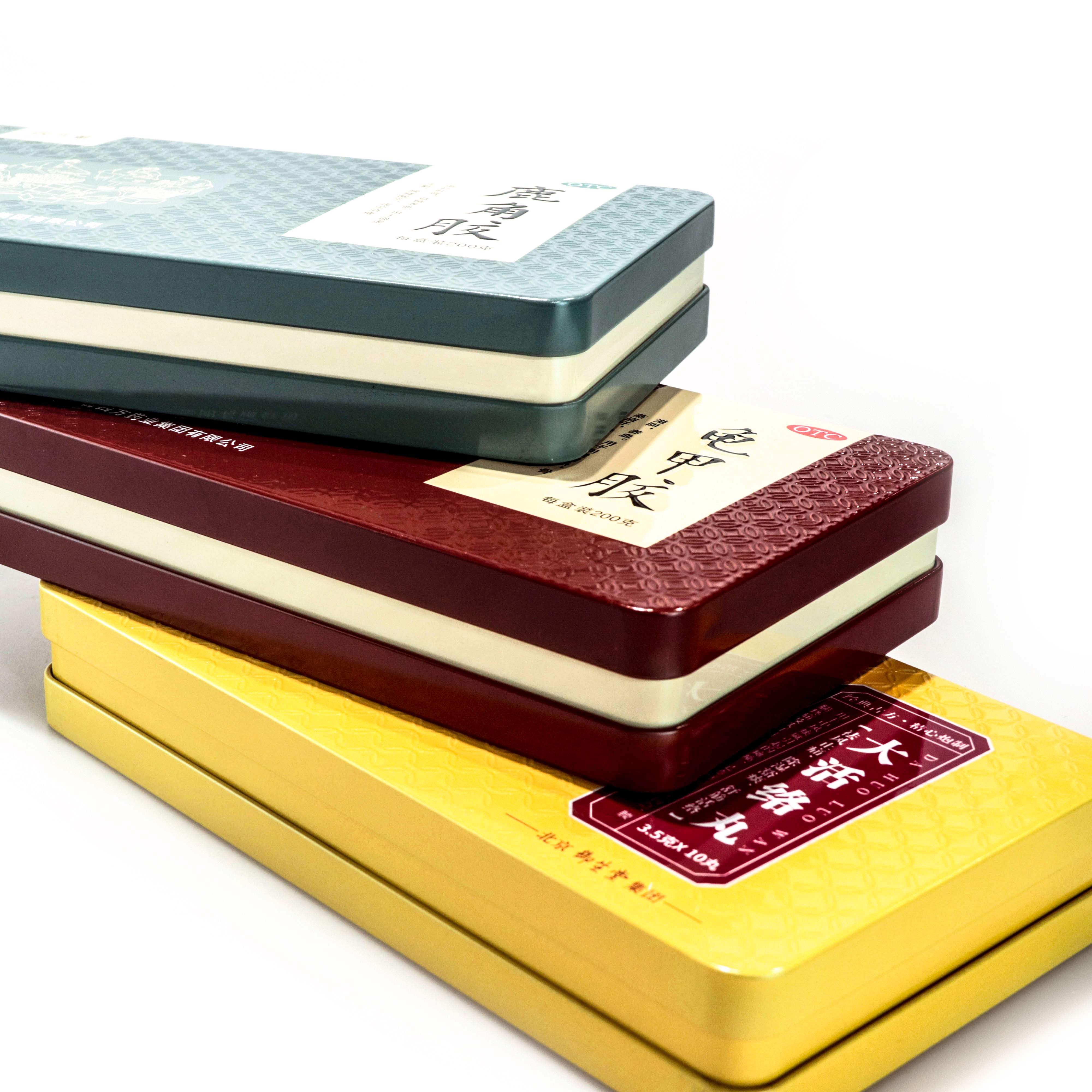 此款阿胶铁盒采用了长方形的形状,底部采取了扣底的制作方式,盖子与底部为同一结构,内部纸质防伪易拉开设计 ,有两种规格可供选择。