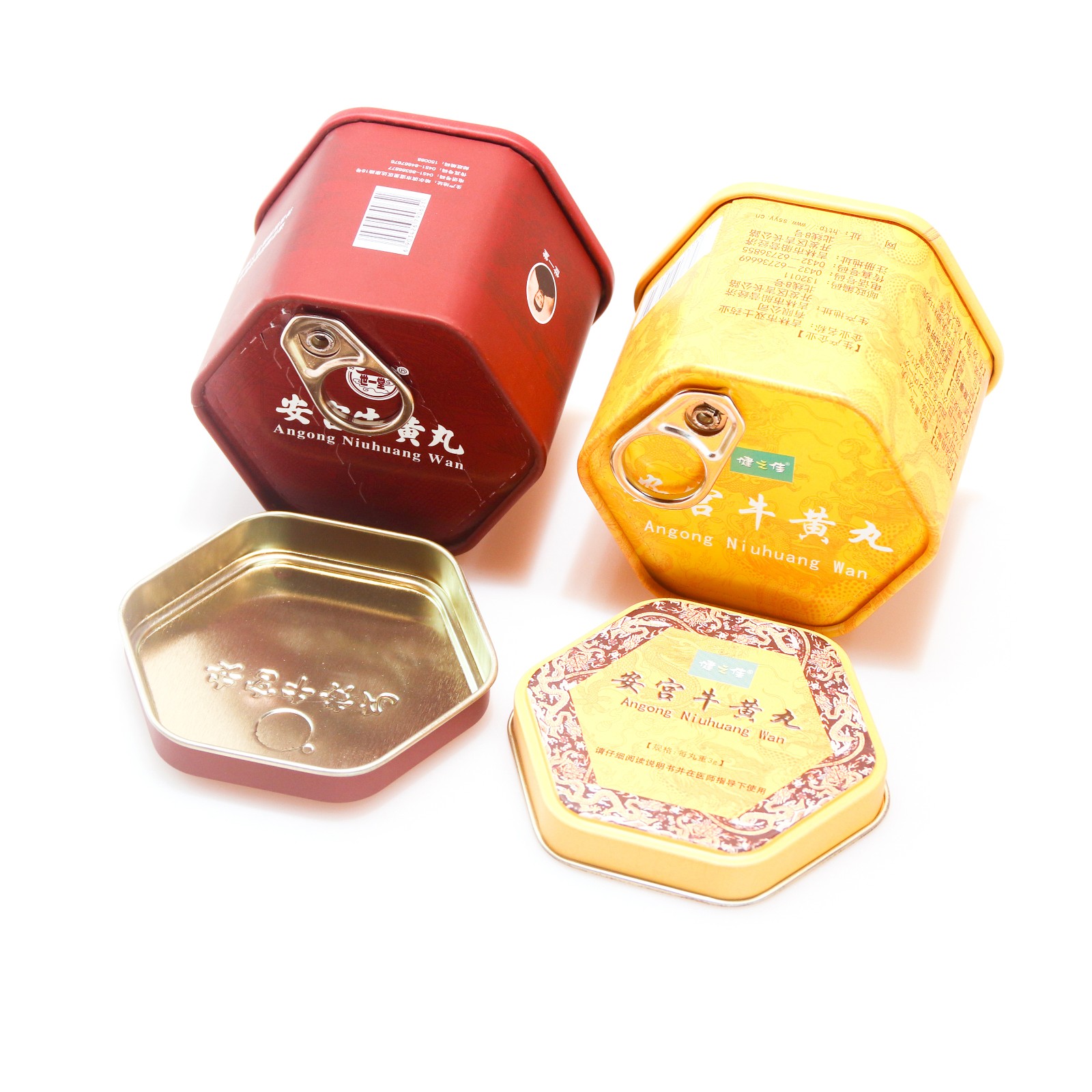 此款铁盒采用了六角形的形状,底部为拍底,内部采用纸皮防伪易拉开设计,盒型小巧精致,适合单个产品或较小型产品使用,精工细作,满足您产品的需求!请及时与我们联系!