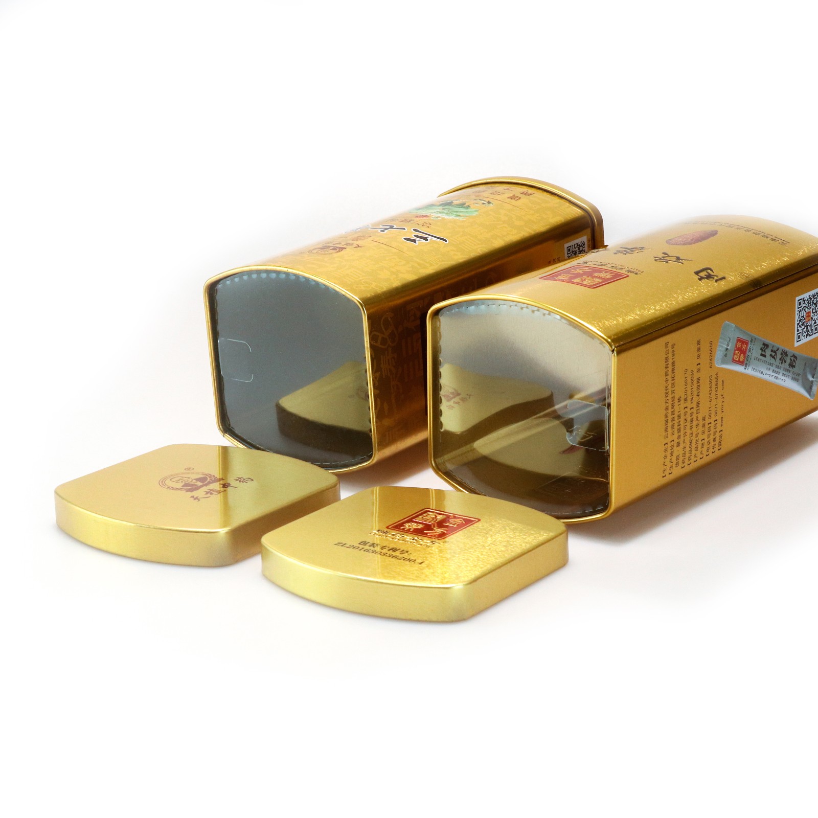 此款铁盒长方形设计,罐身拍底,罐内PVC防伪,盖内卷,可供保健品,茶叶,糖果以及其他食品类礼品类产品使用,更有其他更多罐型可供选择,满足您产品的需求!请及时与我们联系!